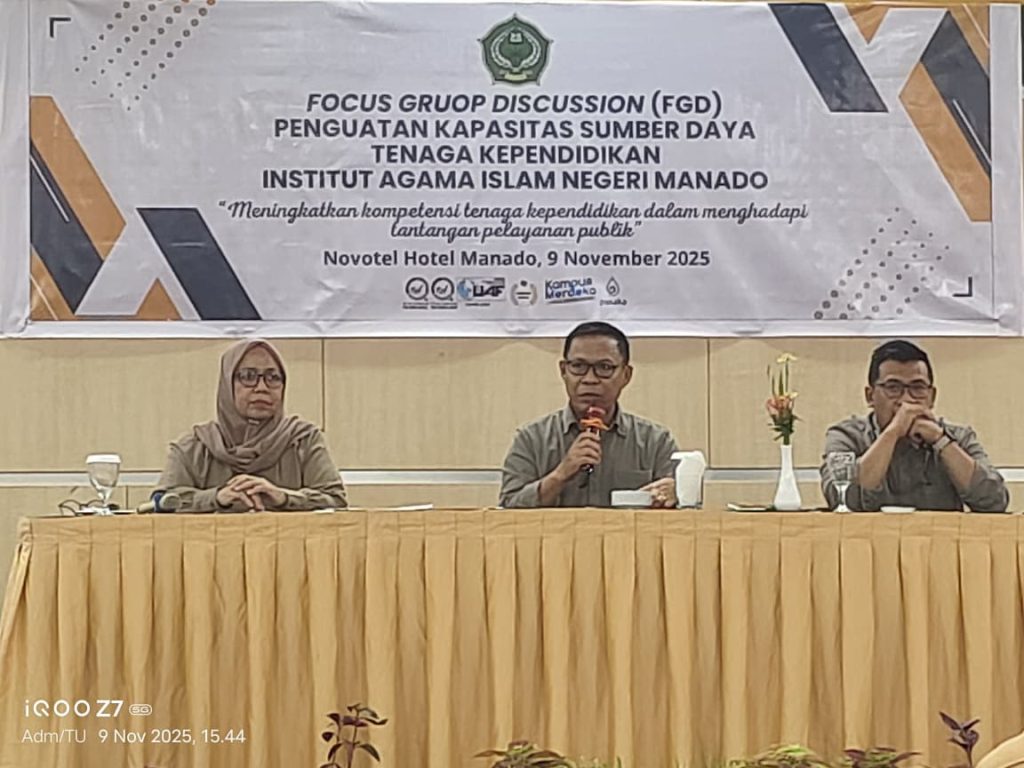 Fakultas Syariah IAIN Manado, – Fakultas Syariah Institut Agama Islam Negeri (IAIN) Manado turut serta dalam kegiatan Penguatan Kapasitas Sumber Daya Tenaga Kependidikan yang diselenggarakan oleh Rektorat IAIN Manado. Kegiatan yang mengusung tema “Meningkatkan Kompetensi Tenaga Kependidikan dalam Menghadapi Tantangan Pelayanan Publik” ini berlangsung di Novotel Hotel Manado pada 9 November 2025.