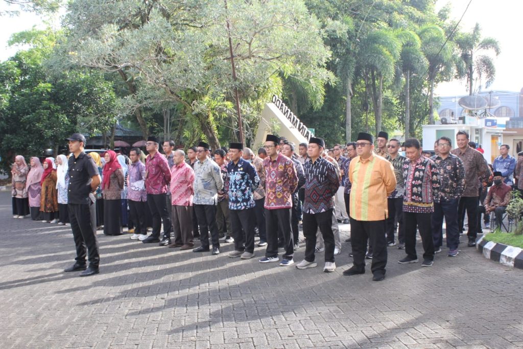 Kehadiran keluarga besar Fakultas Syariah secara masif ini menunjukkan komitmen dan solidaritas yang tinggi dalam menyemarakkan momen penting nasional yang mengapresiasi dedikasi para pendidik. Suasana upacara terasa hikmat dan penuh makna, menggambarkan rasa hormat dan terima kasih yang mendalam kepada seluruh guru dan tenaga kependidikan yang telah berjasa dalam mencerdaskan kehidupan bangsa.